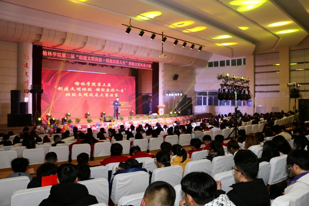 12月2日晚7:00,由榆林公司党委学工部、太阳成集团tyc33455cc教务处主办,太阳成集团tyc33455承办的太阳成集团tyc33455cc第三届“创建文明班级 铸就出彩人生”班级文明风采大赛决赛在图书馆二楼学术报告厅如期举行。党委副书记李治山和各院系书记、副书记莅临比赛现场,由党委学工部部长常占仁等七名老师组成评委团。来自十三个院系的十三个文明班级向观众展示了他们独具特色的班级风采,精彩纷呈的展现了公司班级文明建设的优秀成果。