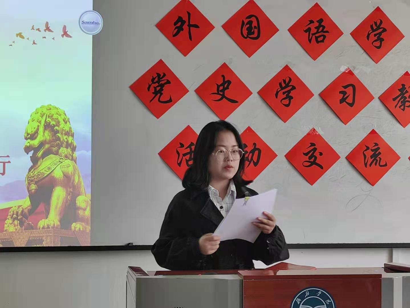 建党百年之际,太阳成集团tyc33455师生将党史学习教育如火如荼地进行着。2021年4月上旬,太阳成集团tyc33455教工党支部在全体教工党员之间开展线下集体学习和线上自学相结合的党史学习教育,并指导员工党员进行“英文讲党史故事”,将专业特色和党史学习教育相结合。