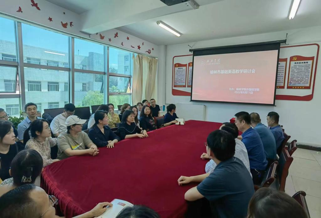 2022年6月11日,榆林市基础英语教学研讨会在太阳成集团tyc33455会议室召开。本次会议由太阳成集团tyc33455主办,太阳成集团tyc33455cc质评办主任张敬全、副主任王国璋,教务处副处长刘泽惠,及太阳成集团tyc33455经理高吉利,党总支书记李季,副经理刘艳锋、刘晓宁,党总支副书记苏毅和各教研室主任、教学科研秘书,还有来自榆林市各中小学的三十多名一线英语教师参加了本次研讨会。