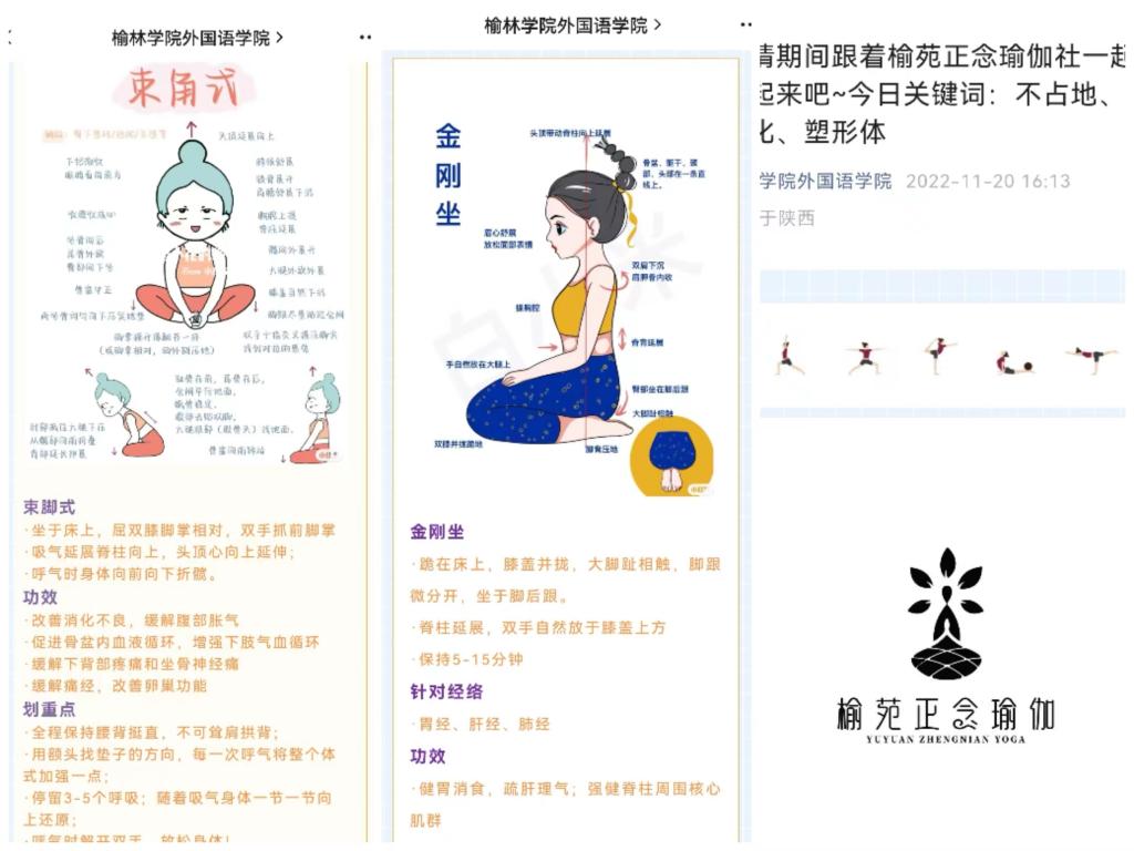 疫情打乱了大家的学习生活节奏,很多同学缺乏运动,心理焦虑,身心健康受到威胁。虽然无法进行跑步、打篮球、健身,但我们可以随时随地地练瑜伽。基于此,公司榆苑正念瑜伽社通过微信公众号给大家推出一瑜伽系列,让老师和同学们足不出户,在家里、宿舍甚至床上就可以做的瑜伽体式。通过呼吸、冥想和体式,调节大家的身、心、灵的和谐统一。希望可以尽绵薄之力守护榆苑师生的身心健康。特殊时期的战役中,人人都是战士,身体是革命的本钱,我们更应该动起来。