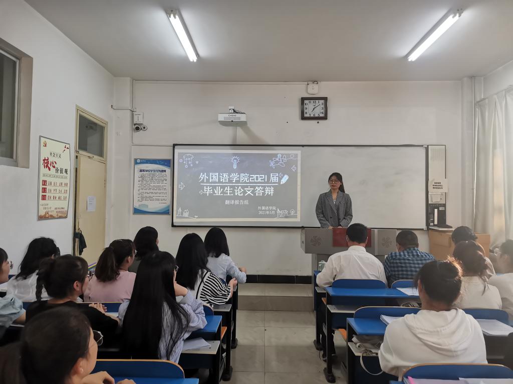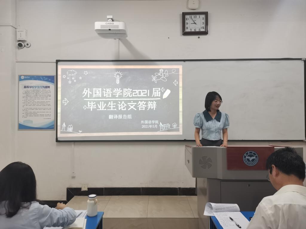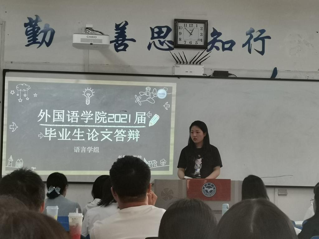 2021年5月28日到29日太阳成集团tyc33455顺利组织了2021届毕业生论文答辩。公司2021届英语、翻译、商务英语三个专业共有192名毕业生,由56名导师指导同学们完成毕业论文工作。英语专业毕业论文包括英语语言学、英国文学、美国文学、跨文化交际、中小学英语教学法、翻译六个方向;翻译专业包括学术论文与翻译实践报告两种形式,商务英语专业包括学术论文与商务报告两种形式。答辩分10个小组进行。导师们准备充分,精心设计问题,既有论文相关基本内容的提问,也有对员工学术能力的检测。从答辩效果表现来看,同学们对论文内容熟悉,对问题理解准确,回答问题表述流畅,逻辑清晰,符合本科毕业生基本能力要求。至此,外国语学经理达22周的2021界毕业论文答辩工作画上了圆满的句号。