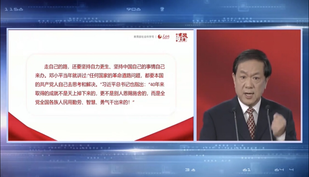 中国人民大学马克思主义学院王向明教授讲述了中国改革开放的伟大成就证明了必须坚定不移地走自己的道路、中国改革开放的伟大成就为科学社会主义的实践注入了勃勃生机。对于改革开放以来中国真正解决了的问题进行了讲述和剖析。使同学们明白我们必须坚持党对一切工作的领导中国共产党的领导是中国特色社会主义最本质的特征,是中国特色社会主义制度的最大优势,同学们要紧跟着党的脚步,勇往直前。