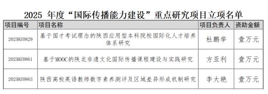 近日,陕西省社会科学界联合会办公室正式公布2025年度陕西省“国际传播能力建设”重点研究项目立项结果,公司共获批3项。