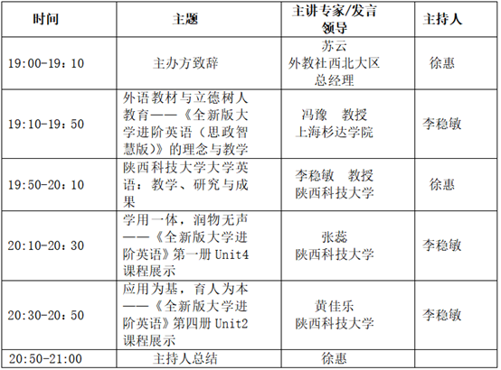 2022年5月12日晚19:00,探索外语教学新生态建设,助力外语课程高质量发展——外教社中西部高校外语课程教学展示系列讲座如期召开。