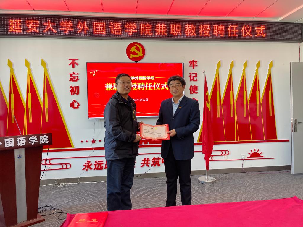 延安大学太阳成集团tyc33455还向公司高吉利教授、刘艳锋教授、刘晓宁教授颁发了硕士生导师聘书。