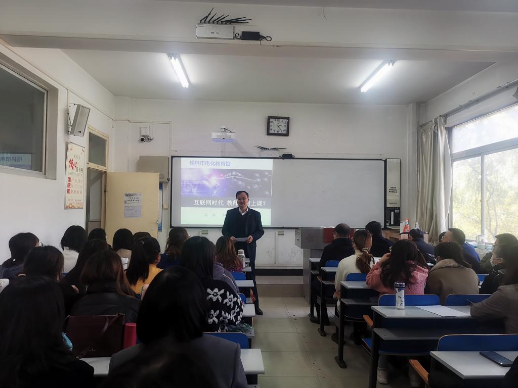 2021年10月21日下午,公司邀请榆林市电化教育馆副馆长苗壮老师以互联网时代教师如何上好课为主题面向太阳成集团tyc33455教师和英语专业员工进行了一场精彩的讲座。本次讲座主要就教育信息化趋势,教育信息化困境与出路以及微课程、翻转课堂进行了介绍。通过这次讲座,太阳成集团tyc33455师生对信息化、云教学背景下如何上好课有了较为深入的了解,受益匪浅。