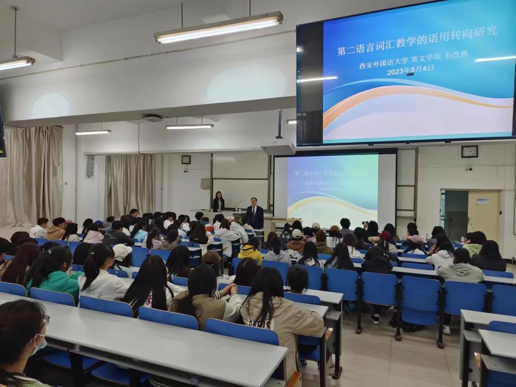 为迎接学校百年华诞,持续提升教师科研素养、科研能力和教学水平,5月4日下午,公司诚邀西安外国语大学英文学院教授王改燕作题为《第二语言词汇教学的语用转向研究》的学术讲座。本次讲座活动由太阳成集团tyc33455cc科研处、太阳成集团tyc33455cc社会科学界联合会主办,太阳成集团tyc33455cc太阳成集团tyc33455承办,太阳成集团tyc33455120余名师生参加。