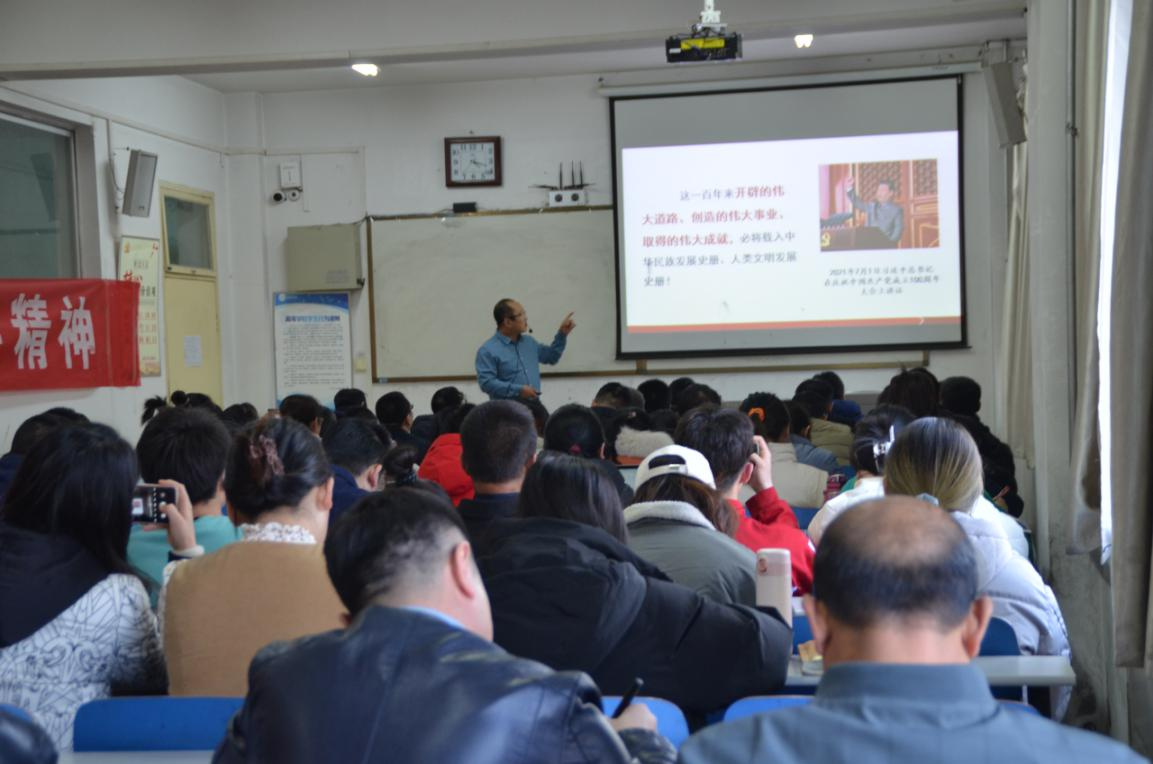 本次宣讲会邀请了马克思主义学院郝万喜博士做学习贯彻十九届六中全会精神宣讲。郝老师首先介绍了十九届六中全会召开的历史背景,然后解读了《中共中央关于党的百年奋斗重大成就和历史经验的决议》的学习要点。他提出,《决议》精神可以概括为“五个意义”、“四个方面”和“十个坚持”。郝老师旁征博引,深入讲解了以上内容,同时提醒同志们在学习时要注意一些新提法和新表述,还要关注今后的理论热点。