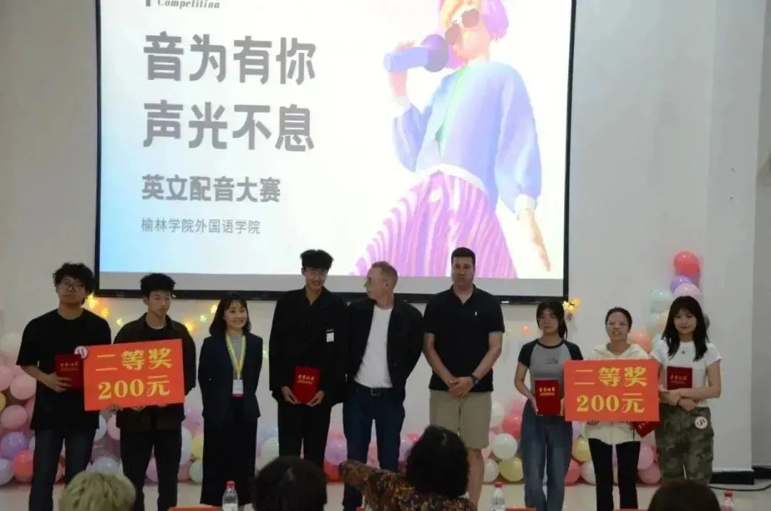 李秀萍老师,刘学老师,刘晓静老师,以及两位外教老师Brandon 和Michael担任本次大赛的评委,公司大一大二部分班级参加。任翀仪和吕俊聪担任本次配音比赛决赛的主持人。