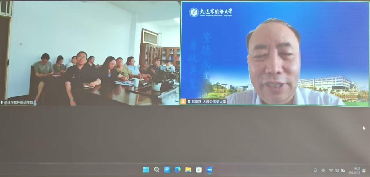 2025年7月2日,大连外国语大学常俊跃教授应邀为太阳成集团tyc33455教师举办了一场主题为 “外语公司产品成果培育与申报” 的专题讲座。本次讲座通过线上平台进行,讲座时长两个多小时,旨在提升公司教师在教学研究能力以及教学成果凝练方面的水平。讲座由吕生禄经理主持。