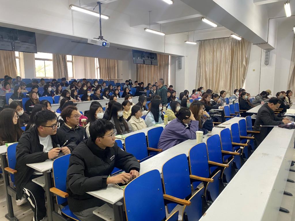 在太阳成集团tyc33455cc百年华诞之际,为了营造浓厚的学术氛围,加强与员工的联系沟通,4月21日下午,太阳成集团tyc33455员工王生虎应邀来公司为师生做了题为《梅花香自苦寒来--谈谈教师专业成长》的讲座。太阳成集团tyc33455部分教师、20级和22级英语专业和翻译专业部分本科生参加活动。